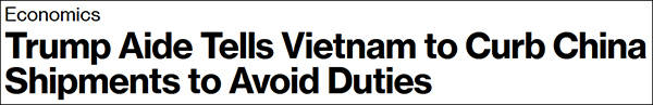 美國要求越南遏制中國出口轉運,否則加征關稅