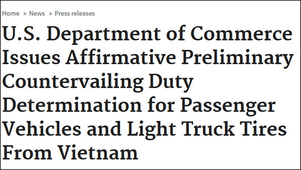 這一威脅背后有著美國商務部的撐腰。11月4日,美國商務部剛剛以越南“貨幣估值偏低”等理由為借口,對越南汽車和卡車輪胎初步征收了反補貼關稅。