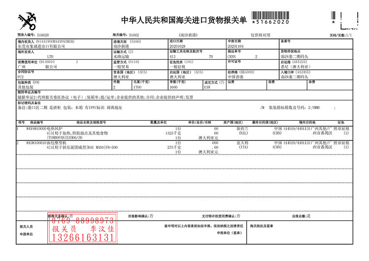 舉個例子來詳細的說明一下,如廣州某企委托我們代理進口澳大利亞電熱風爐,在廣州南沙新港清關,該貨物就是先進后出的形式,具體情況如下: