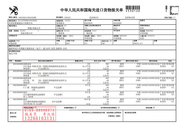 四,德國潤滑油泵退運(yùn)及香港進(jìn)口報關(guān)流程: